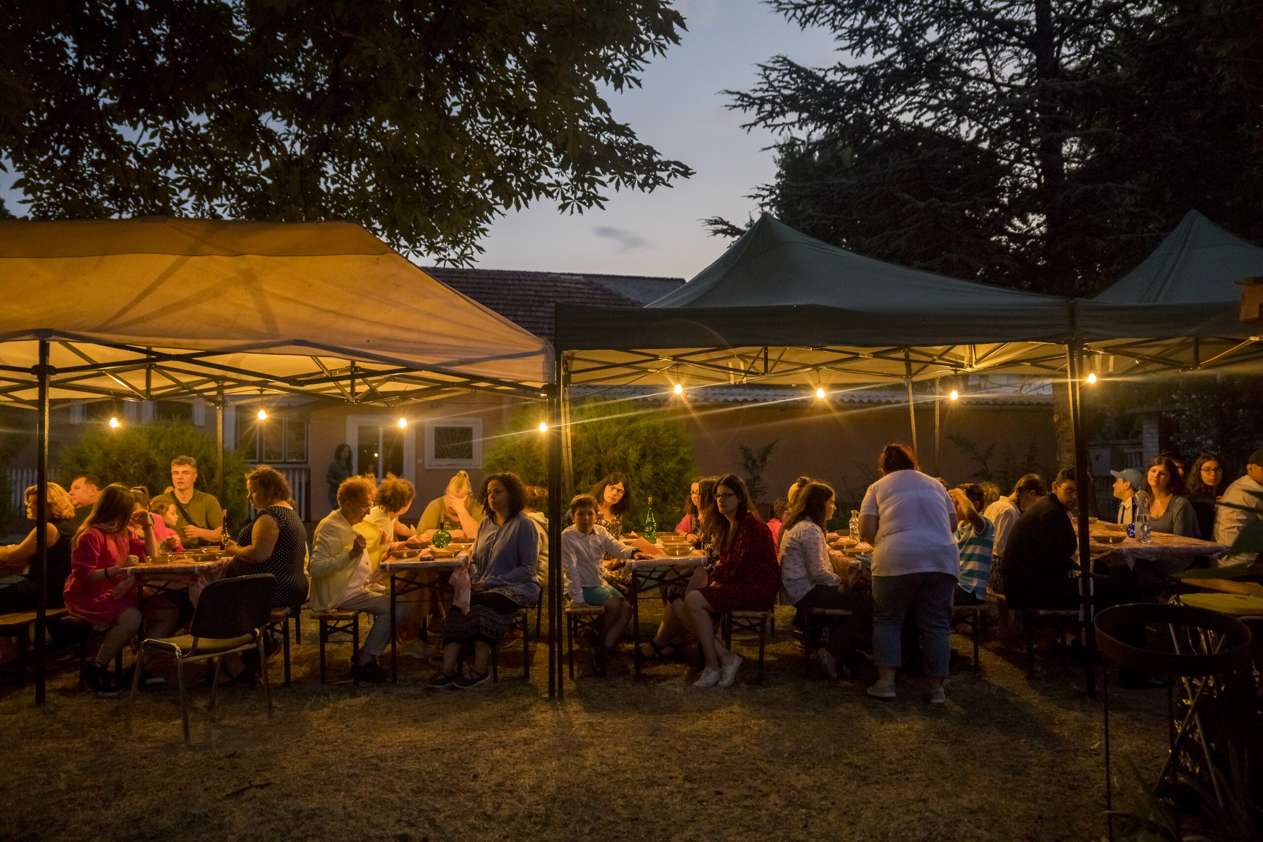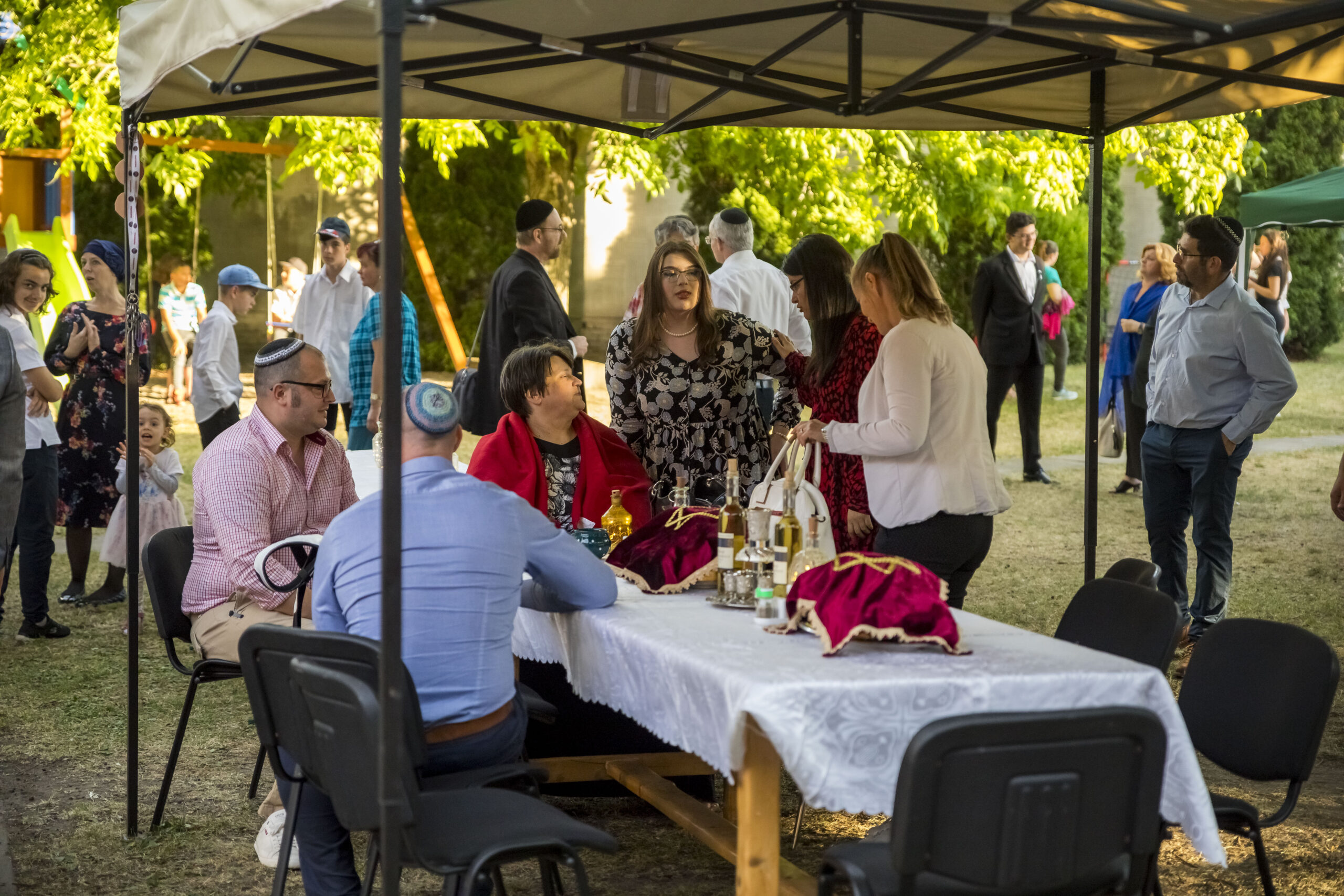 Az asszonyok azonnal a szárnyaik alá vettek, és egy igazán finom maceszgombóc-levessel vártak, miközben a főrabbi és Babi körbevezettek a táborban. Furcsa a „tábor” szót sokadszorra leírnom, mert igazából annyira családias volt a hangulat, hogy nem volt táborérzésem, amint beléptem a kertbe. Minden flottul ment, a gyerekek és családok kellemesen be tudtak költözni a nekik fenntartott helyekre, a konyha szuperül működött, a szervezők gondosan ügyeltek arra, hogy senki se maradjon éhes, és napi ötször kóser étel kerüljön az asztalra, ami közel nyolcvan főnél nem kis teljesítmény.