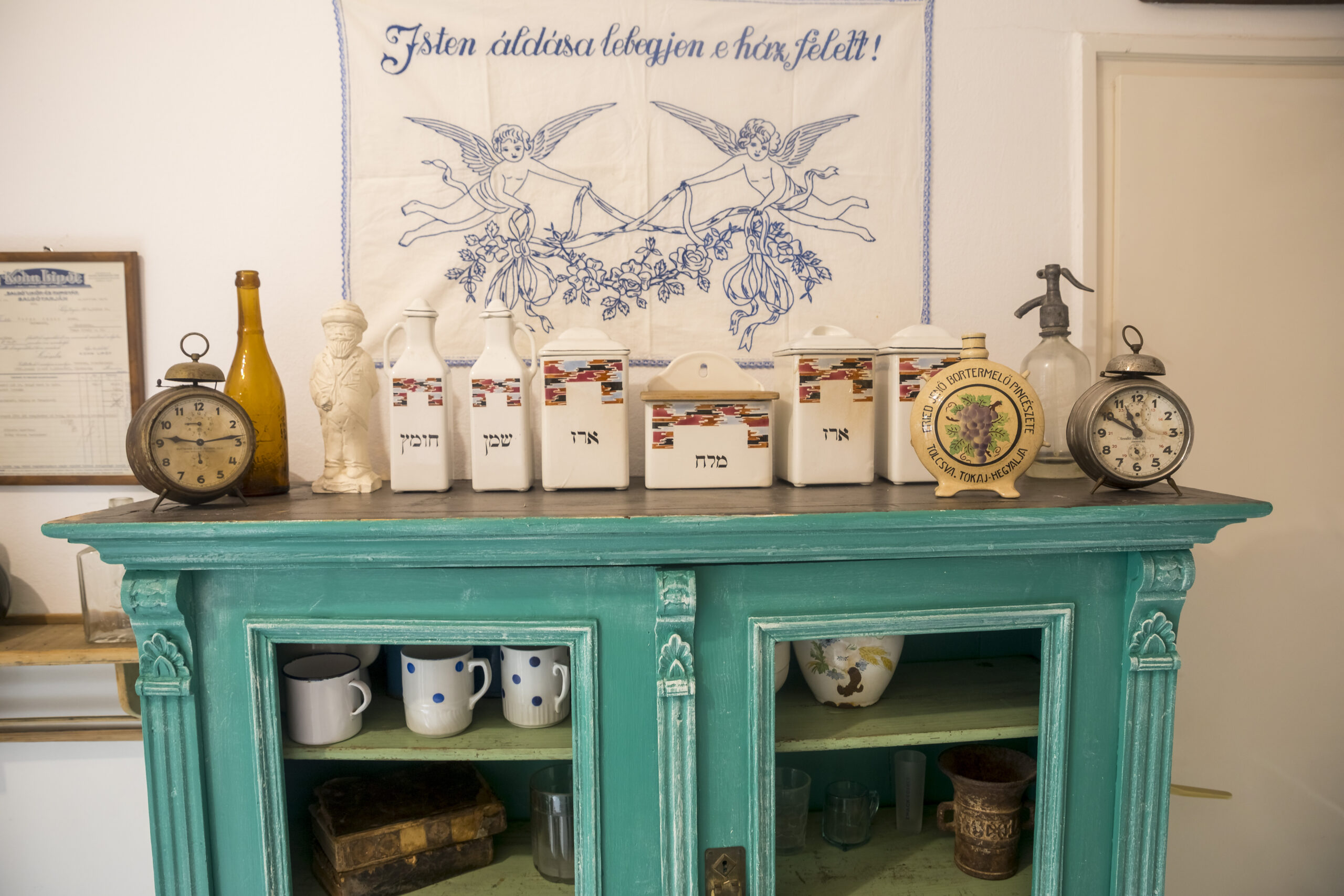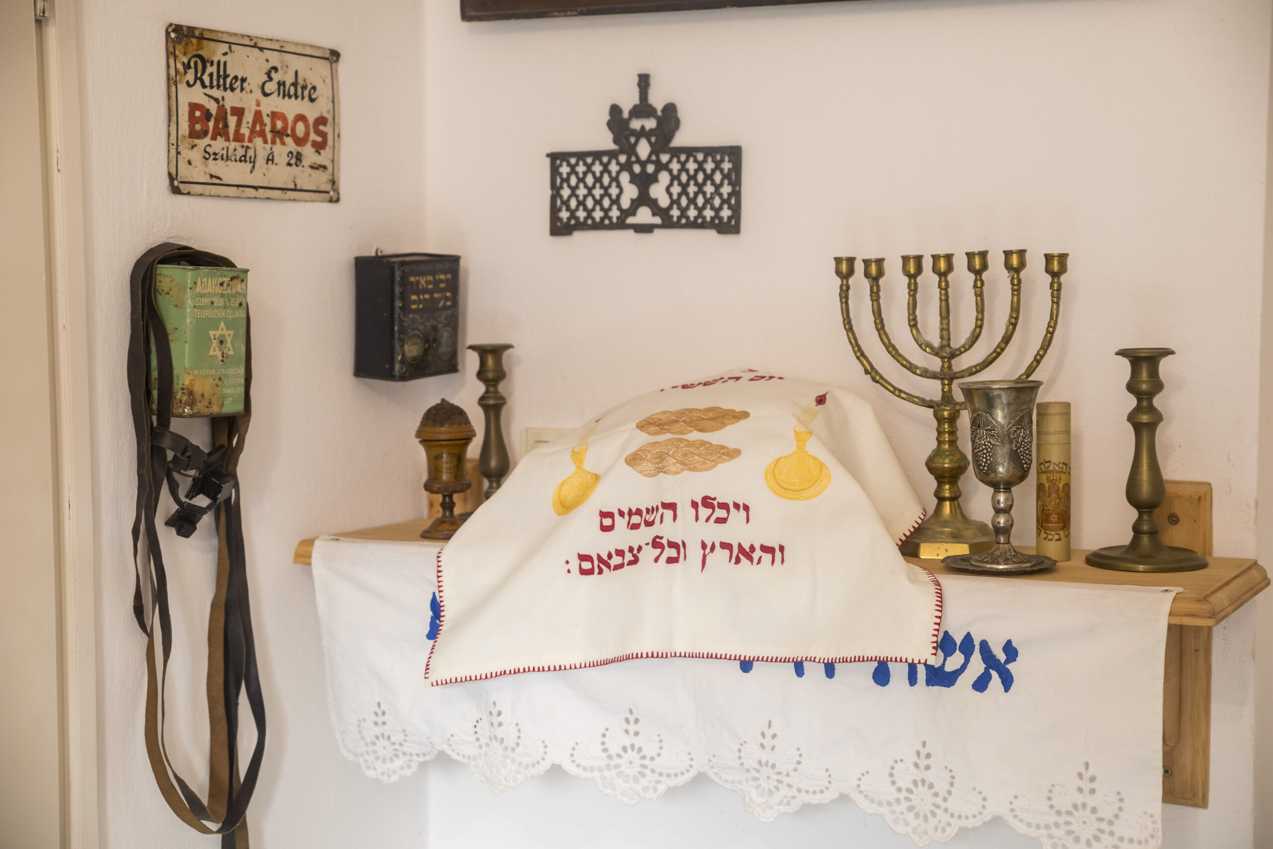 A helyi zsinagógát és közösségi teret volt már szerencsém ismerni, több ízben láttak már vendégül, gondolok itt a néhai Raáb Andrásra vagy a közösség új vezetőjére, mindannyiunk Babijára, Ritter Nándorné elnökasszonyra, aki mindig egy kedves öleléssel, egy jó szóval várja még a farkast is, nemhogy a környékbeli gyerekeket és a hitközség felnőtt tagjait. Igaz, hogy én már a kész táborba csöppentem bele, de a főrabbi és kedves neje, Ivett mesélték nekem, hogy napok óta nagy a sürgés-forgás, minden szobát patyolattisztán kaptak a táborozók, a bevásárlásokat és a menüsort napokig tervezték… Szóval tényleg le a kalappal a helyi zsidó hitközség előtt. Oláh Adriánt eddig egyszer volt csak szerencsém látni, de ahogy akkor, most is igazi meleg szívvel fogadott, és rögvest megmutatta a hitközségi ház oldalában található kis múzeumot is, melyben számos zsidó relikviát tartanak. Ritka az ilyen ember manapság, akinek legalább annyira fontos a közjó, mint a saját jóérzete.