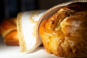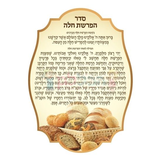Áldott vagy Te, Örökkévaló I-stenünk, a világ Királya, aki megszenteltél minket parancsolataiddal, és meghagyta nekünk, hogy leválasszuk a chálát a tésztából.